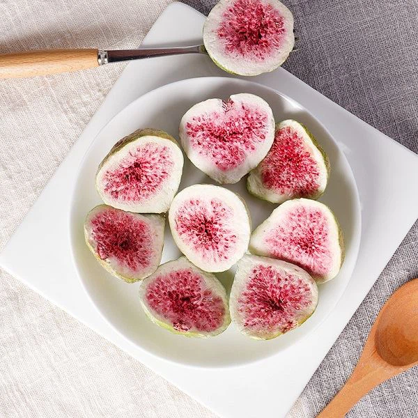 Сублимированный инжир, изготовленный методом сублимационной сушки, из высококачественного исходного сырья, сельскохозяйственных продуктов из высококачественных посадочных баз, контроля качества исходного сырья и выбора крупных плодов правильной формы и яркого цвета. , поместите влагосодержащий инжир в вакуумный резервуар после замораживания и нагрейте его с помощью излучения теплоносителя, чтобы обезвожить и высушить инжир. После сублимационной сушки можно удалить более 95-99 процентов воды, форма, цвет и аромат инжира остаются неизменными, вкус становится хрустящим, можно долго хранить при комнатной температуре. А без добавления каких-либо консервантов может долго храниться без порчи. Дегидрированный лиофилизированный инжир имеет малый вес и привлекательный внешний вид, и его можно использовать в качестве повседневных закусок для украшения тортов, компаньона для йогурта, в офисе и на прогулке. И это легко носить с собой, оригинальный вкус, хрустящий, фруктовый аромат и подходит для всех возрастов.